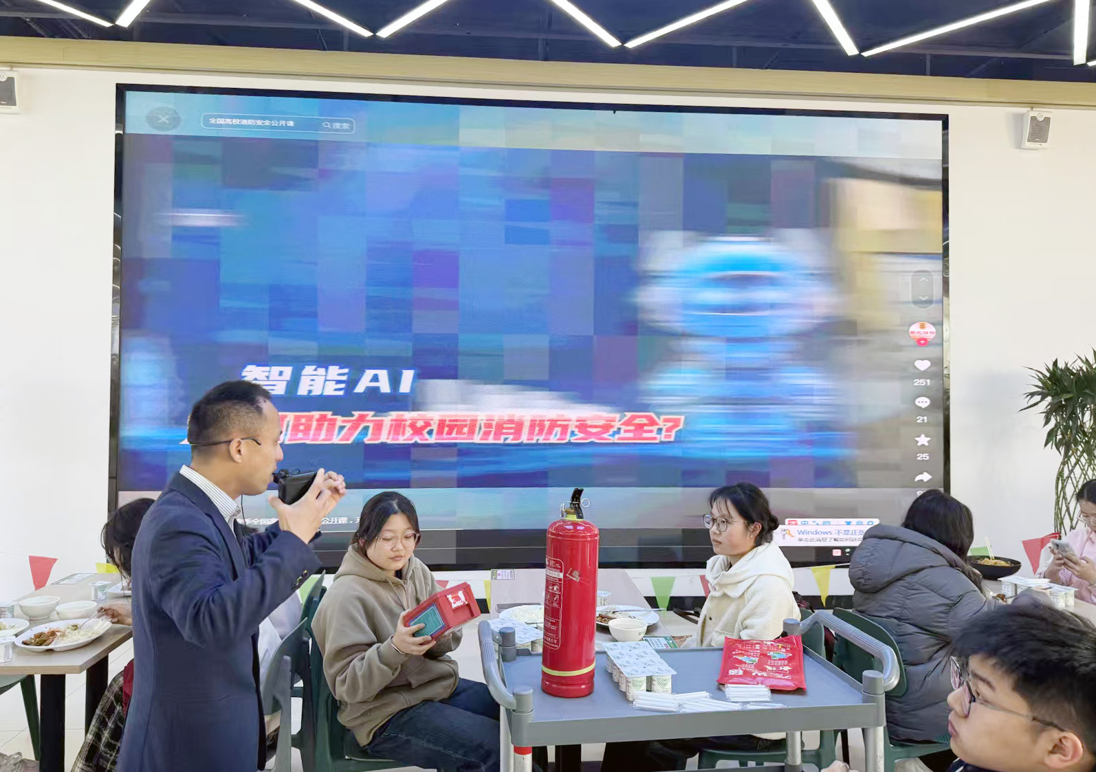 3月18日,学校组织师生员工收看2025年春季全国高校消防安全公开课。师生员工分别在食堂餐厅、一站式学生社区、多媒体教室教室观看直播,安全管理处工作人员组织开展消防知识问答、消防灭火体验等活动,进一步增强公开课的互动性与实效性。