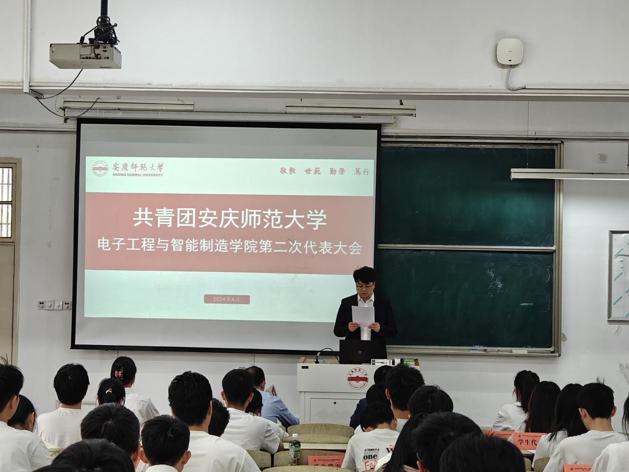 近日,共青团安庆师范大学电子工程与智能制造学院第二次团员代表大会在稼先楼南100教室召开。学院党委书记夏云高、党委副书记高栋梁出席会议。会议由院团委负责人主持。